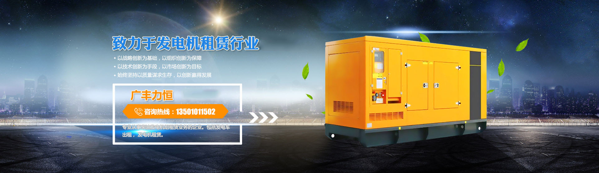 北京廣豐力恒機械設備有限公司是北京從事柴油發電機組租賃業務的企業。包括發電車出租, 發電機租賃。公司自成立開始從事發電機租賃業務,通過工程項目經驗,磨煉出一批技術強的電氣機械師,集電氣設計、安裝、自動化控制、發電機組多機并車、發電機組遠程智能控制、負載檢測、機械維修保養、機房降噪等人員。現有大中小型發電機組數百臺,能隨時為各地有供電需求的單位提供多方位服務,發電機組功率從50KW-5000KW均可提供。發電機組顯著的特點是可靠、噪音低。